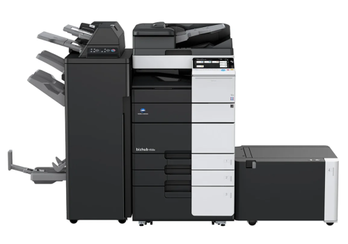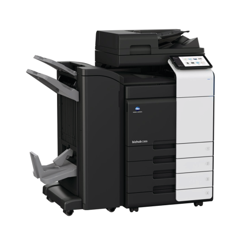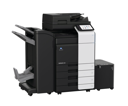 В стандартную комплектация входит МФУ с сетевым полноцветным сканером, модуль дуплекса, две универсальные кассеты подачи бумаги по 500 листов формата А4/A3 каждая, SSD диск на 256 Гб, диск с ПО, сетевой кабель 220В.