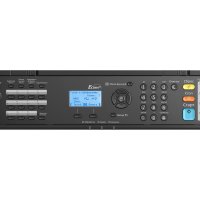 В стандартную комплектация входит МФУ с сетевым полноцветным сканером, автоподатчик реверсивного типа, модуль дуплекса, одна универсальная кассета подачи бумаги на 500 листов формата А4, стартовый тонер-картридж на 6000 страниц, диск с ПО, сетевой кабель 220В.