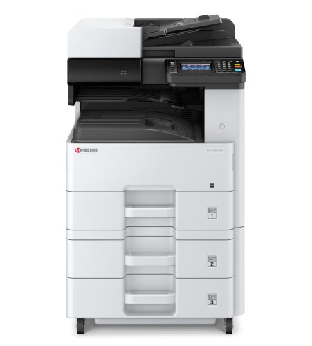 В стандартную комплектация входит МФУ с сетевым полноцветным сканером, автоподатчик реверсивного типа со скоростью сканирования цветных и черно-белых оригиналов 50 стр. в минуту, модуль дуплекса, одна универсальная кассета подачи бумаги на 500 листов формата А4/A3, стартовый тонер-картридж на 3000 страниц, диск с ПО, сетевой кабель 220В.